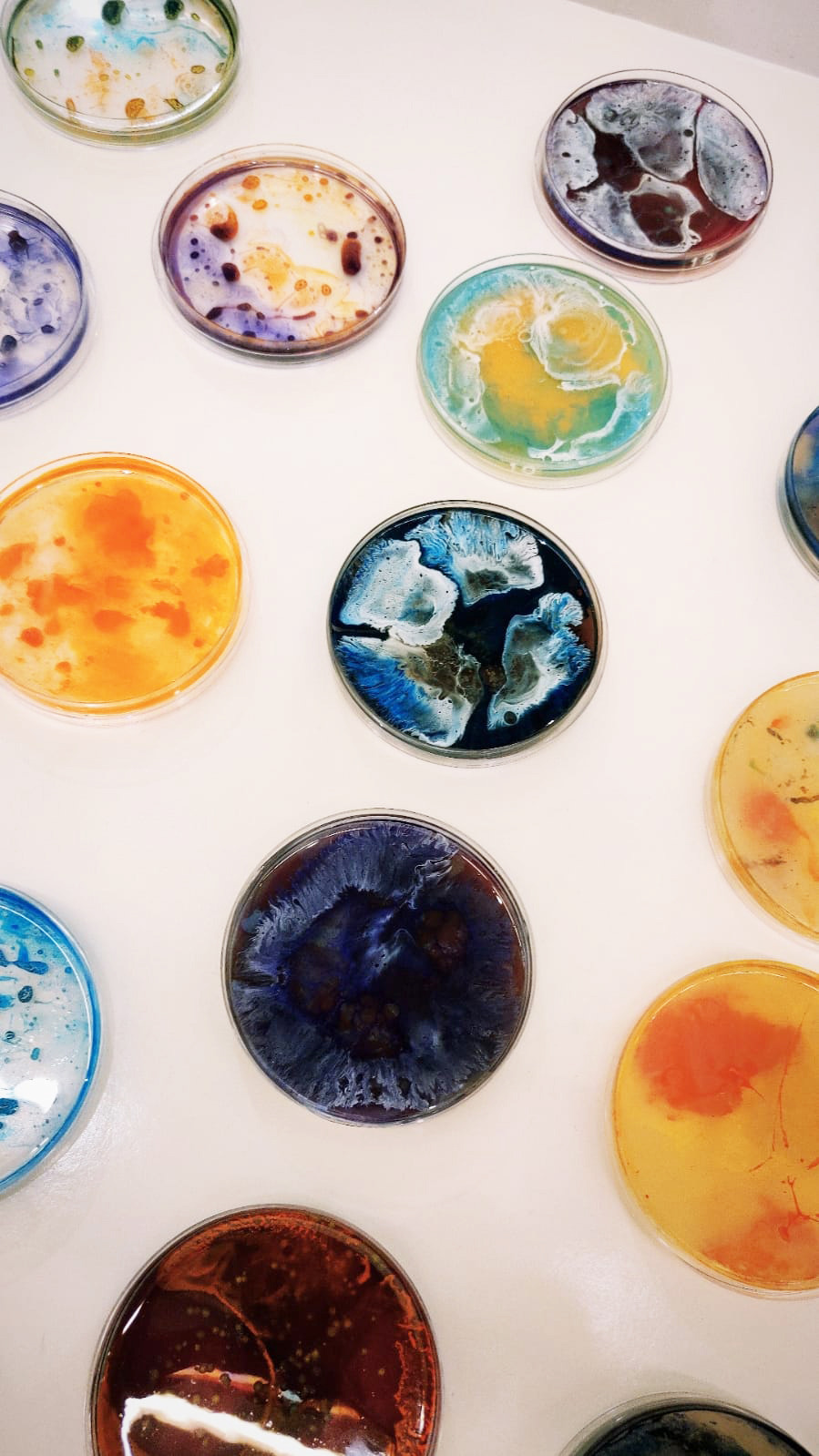 During my exhibition, visitors were invited to place the Petri dishes on light sources, allowing them to explore the intricate details and textures and to appreciate bacteria not as something dirty, but as something fascinating and, perhaps, even beautiful.